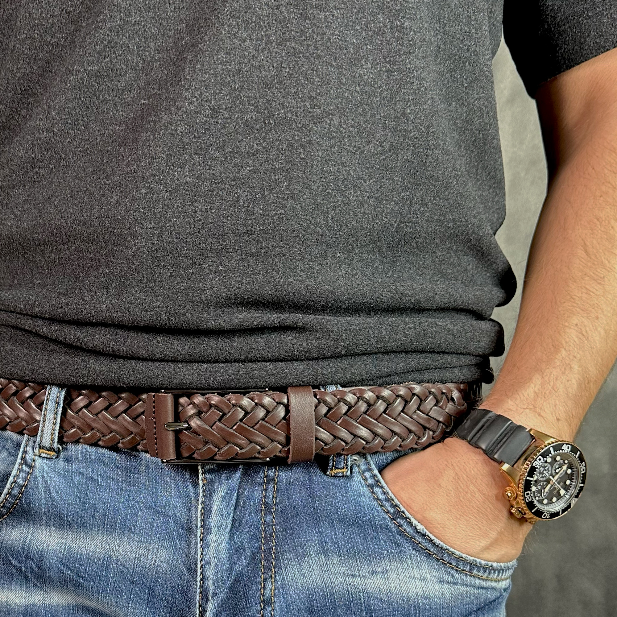 За счет плотного плетения и чуть более толстой натуральной кожи ремень серии Harry идеально подойдет для джинс. Он уверенно держит форму и надежно фиксирует посадку. Кожаный плетеный ремень Nevatus DG серии Harry доступен в трех классических цветах: черный, коричневый и коньячный, что позволяет подобрать цвет сочетающуюся именно с вашим гардеробом.