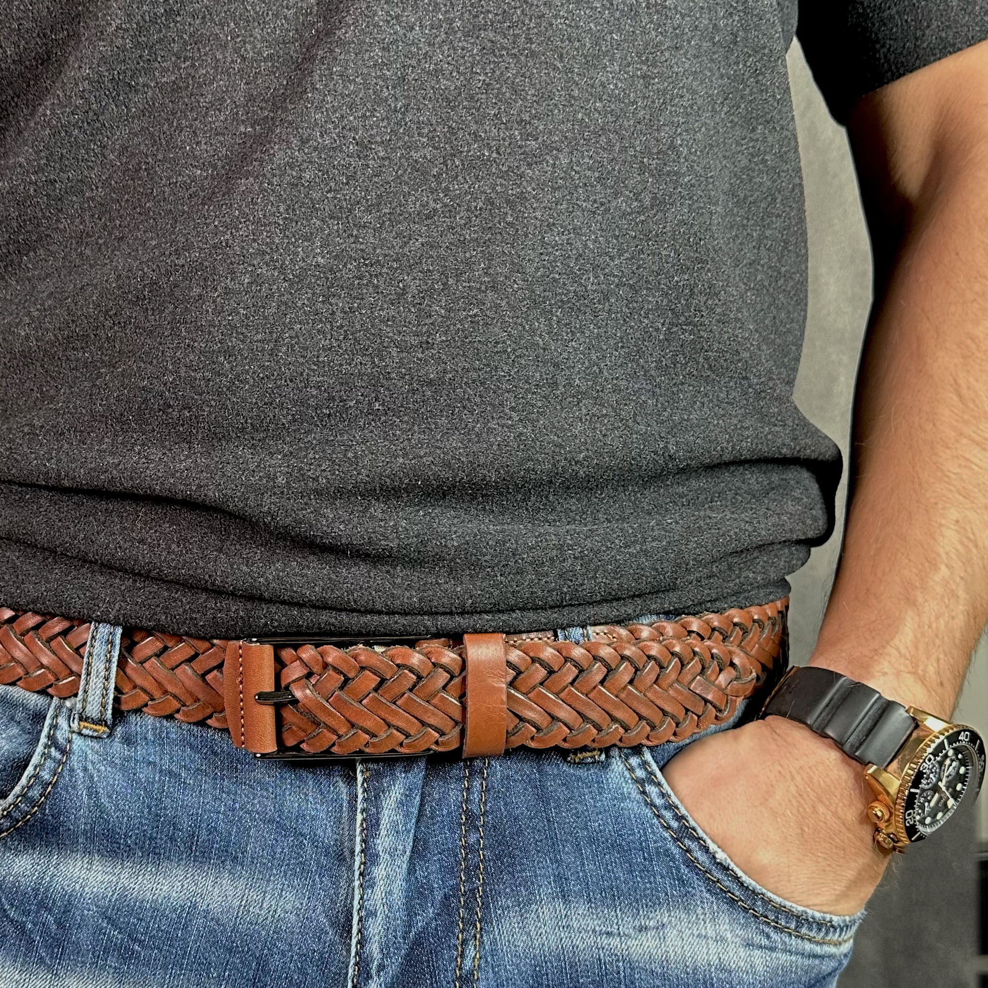 • Кожаный мужской плетеный ремень Nevatus DG серии Harry — стильный аксессуар для уверенных мужчин, ценящих комфорт, эстетику и надежность. Ремень изготовлен вручную из натуральной телячьей кожи повышенной плотности, благодаря чему модель имеет более жесткую форму, сохраняя при этом эластичность и комфорт при повседневном использовании. Плотное плетение делает ремень Harry особенно выразительным и долговечным.
